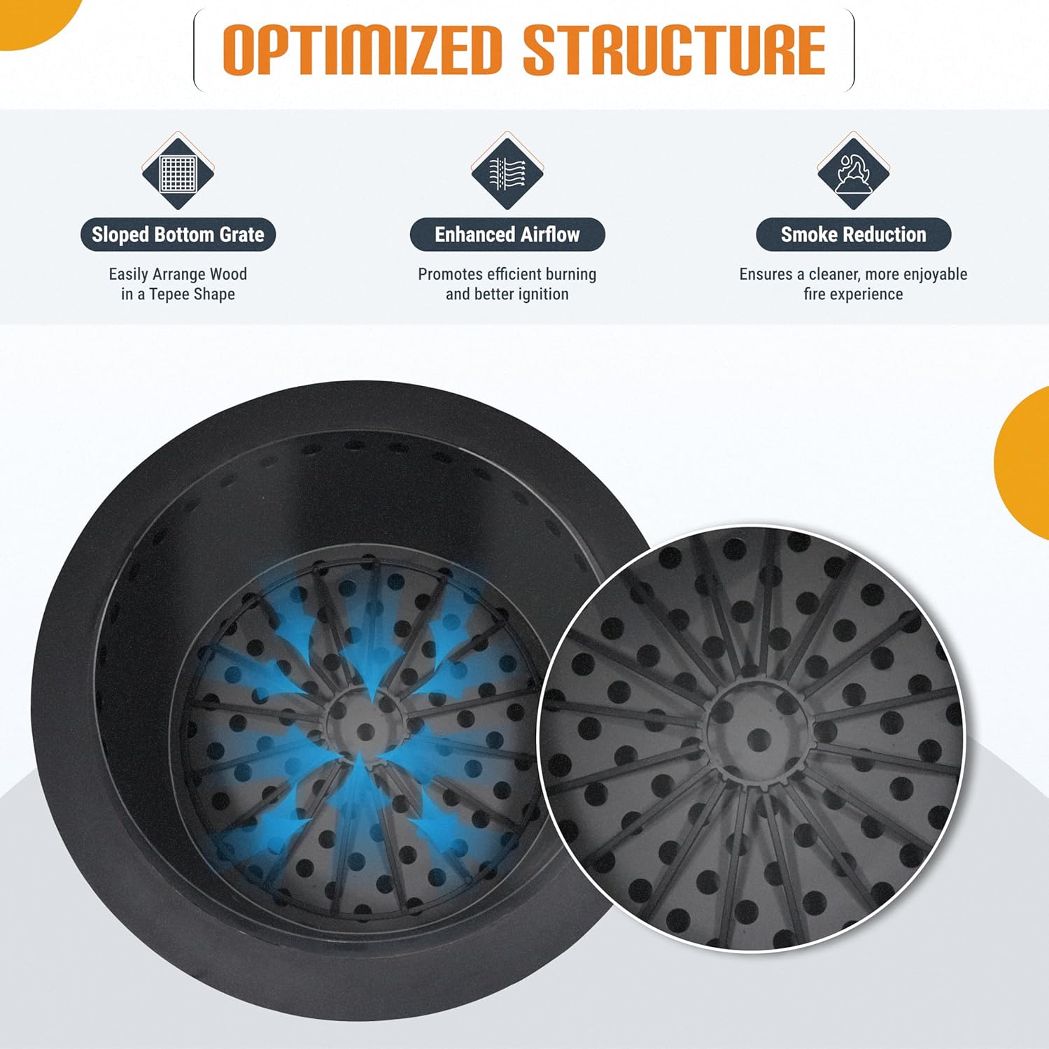• Heat-Resistant Paint & Easy Stacking Grate: This large smokeless firepit features heat-resistant paint and a sloped grate for easy wood stacking, ensuring efficient bonfires with optimal airflow.