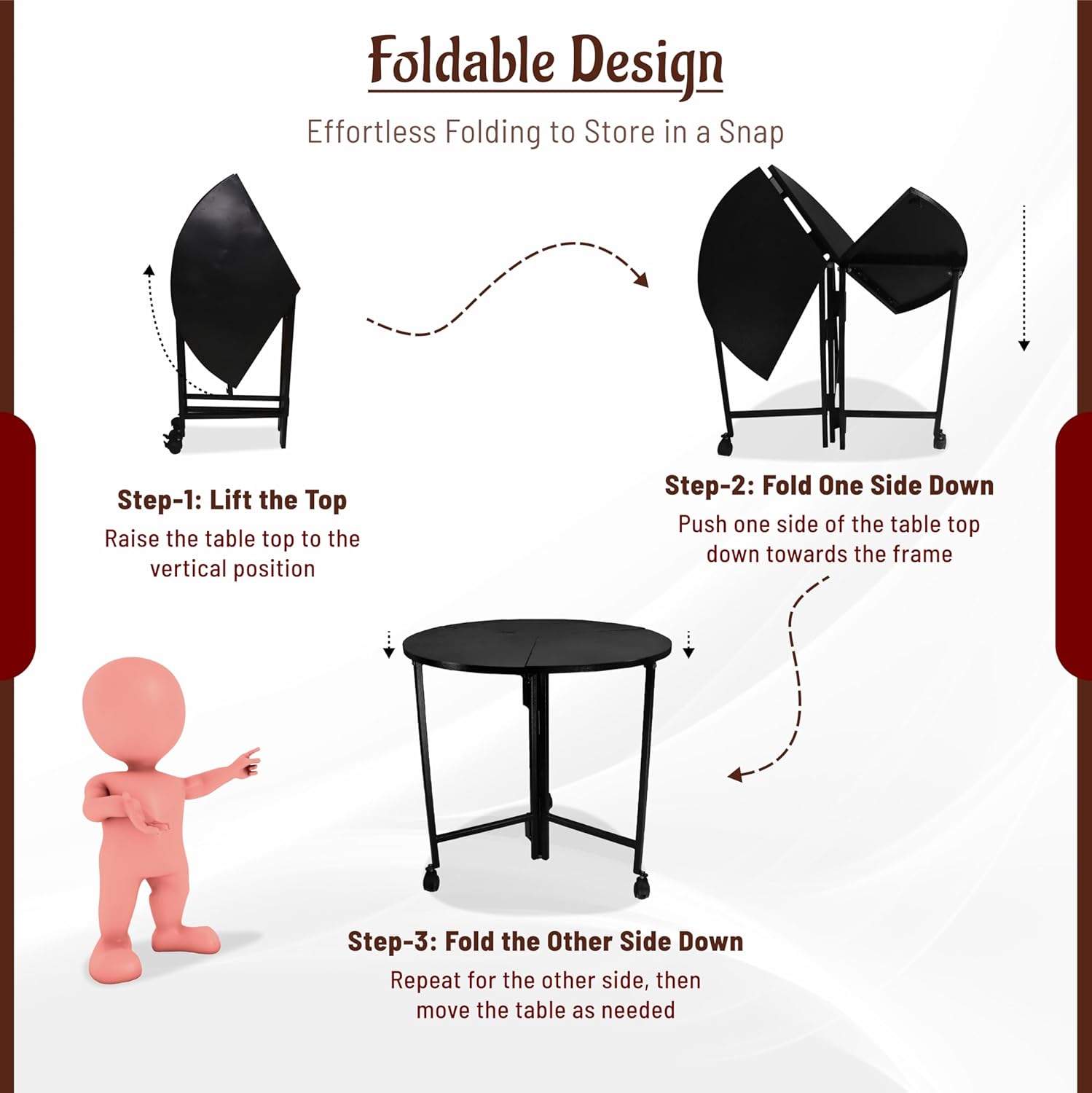 • Fold & Carry Effortlessly: This 30 inch dining table folds neatly at the center, and this circle folding table is easy to carry to organize event table, card tables, Conference Table or banquet tables & is compact to store.