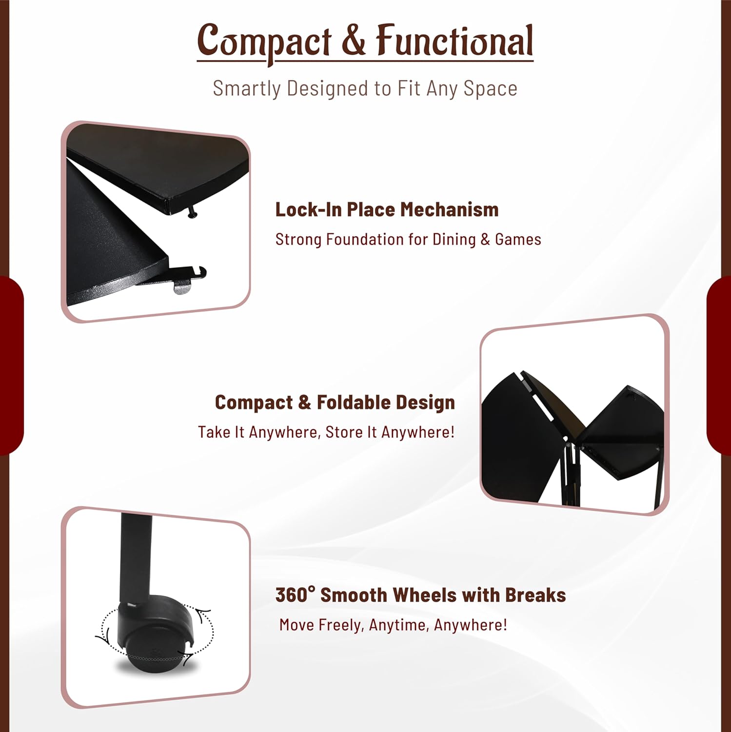 • Stylish round table foldable : This round card tables folding & portable round table includes a leather-finish cover that enhances the look and protects the round table folding from spills, dents, and scratches.