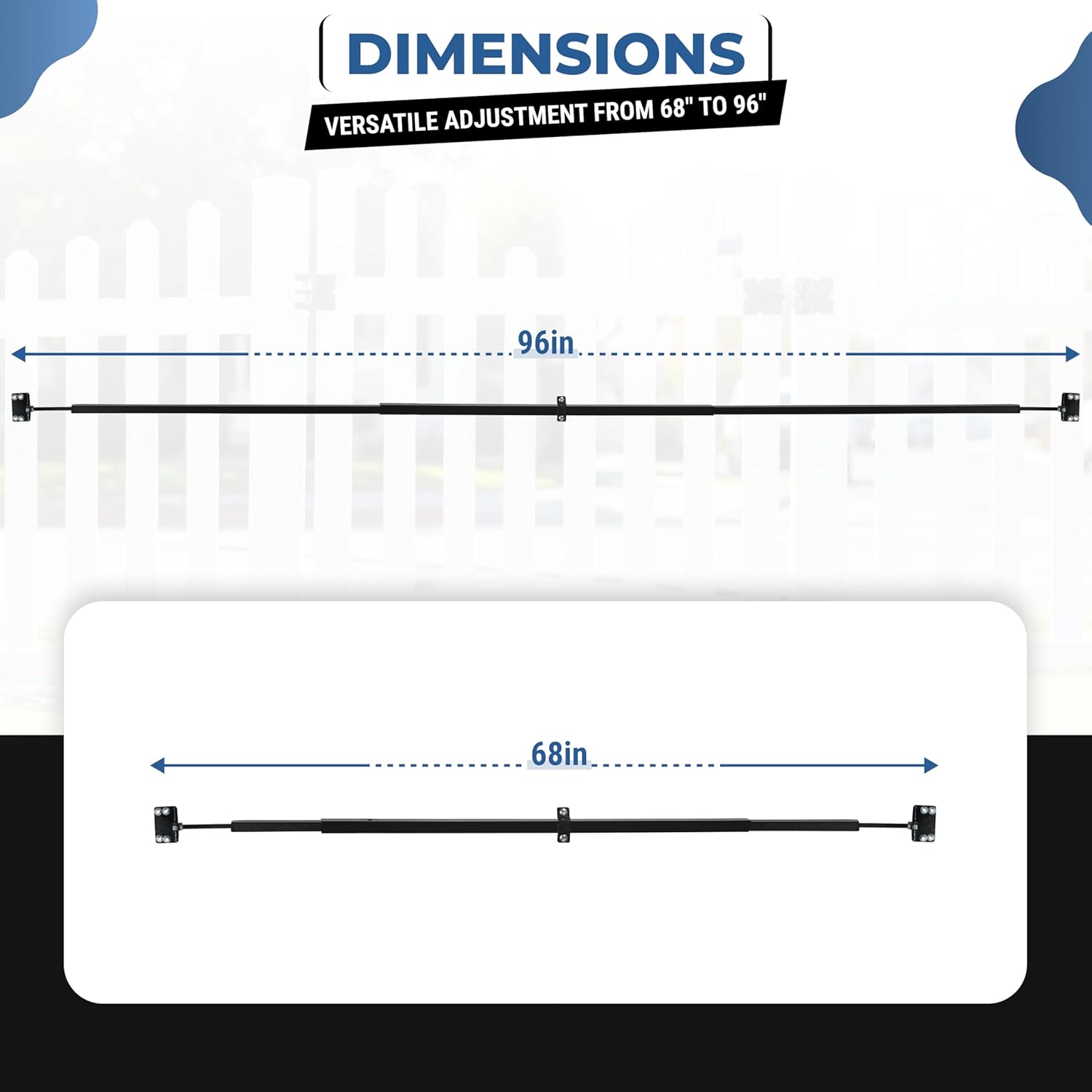 - Precision Fit : Easily adjustable from 68 inches up to 93 inches, this heavy-duty gate support fits a wide range of gate sizes, from narrow wooden garden gates to large double-swing or driveway gates