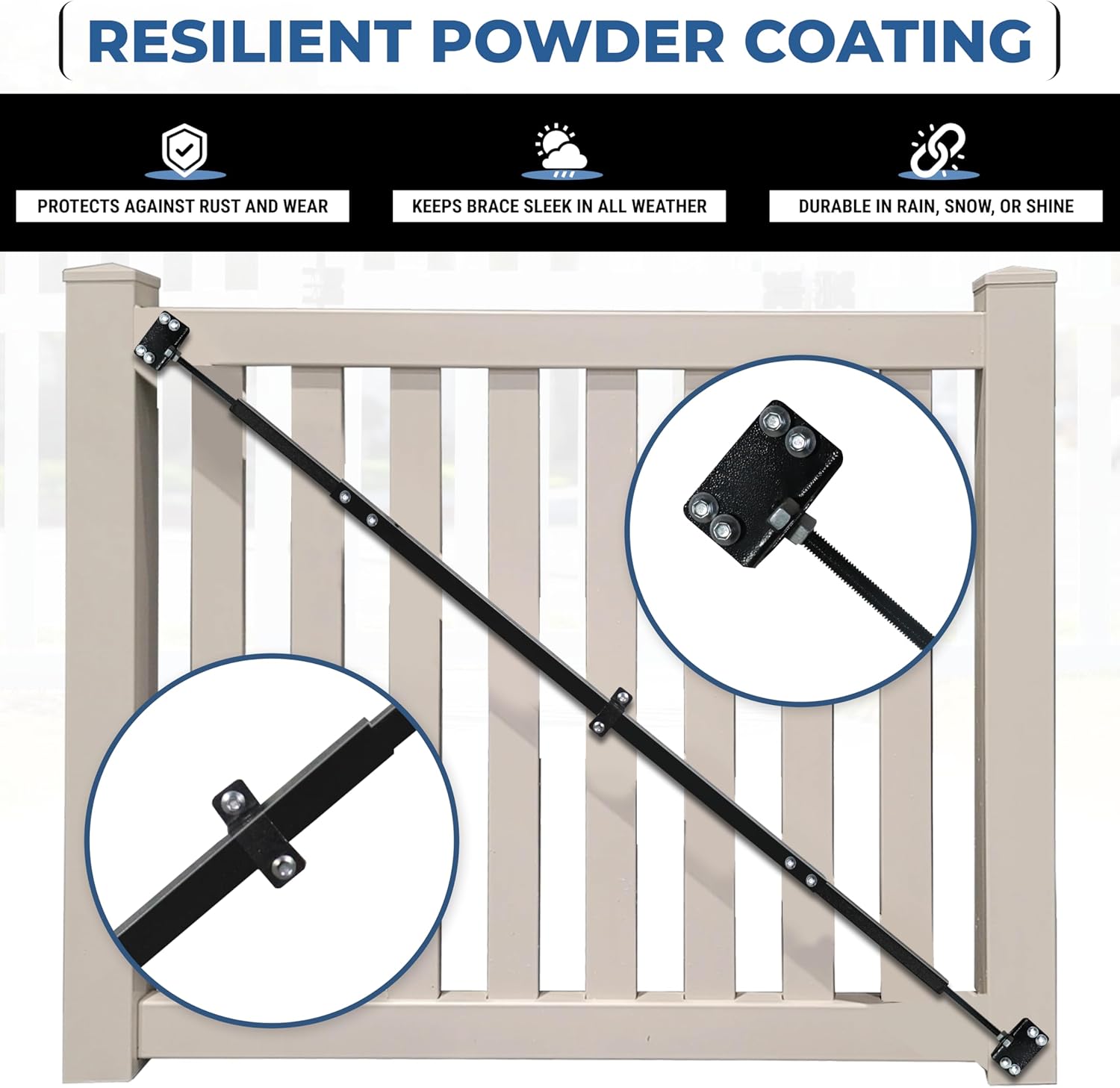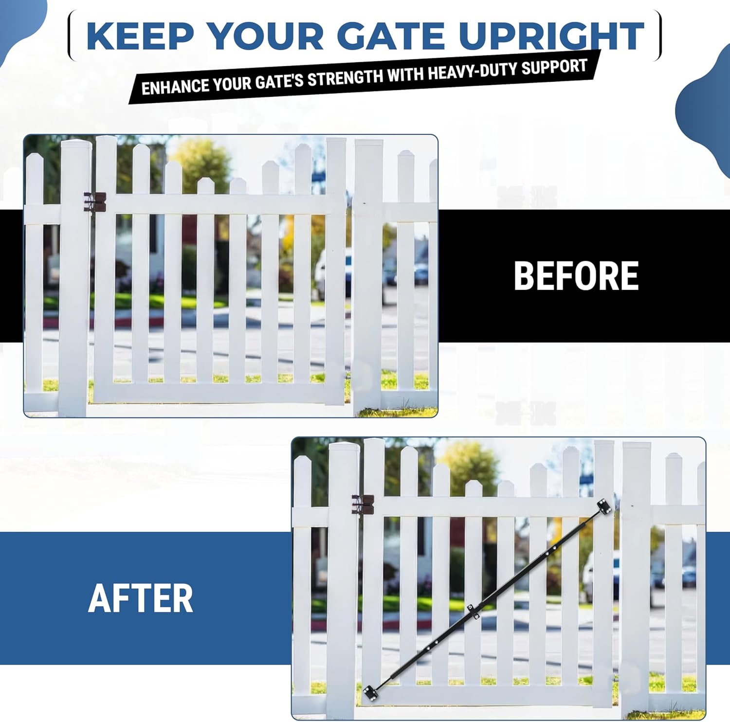 - Extendable Anti-Sag Brace: This telescopic gate brace adjusts to restore alignment, eliminate sagging, and protect your gate from wear, extending its life and saving on costly repairs
