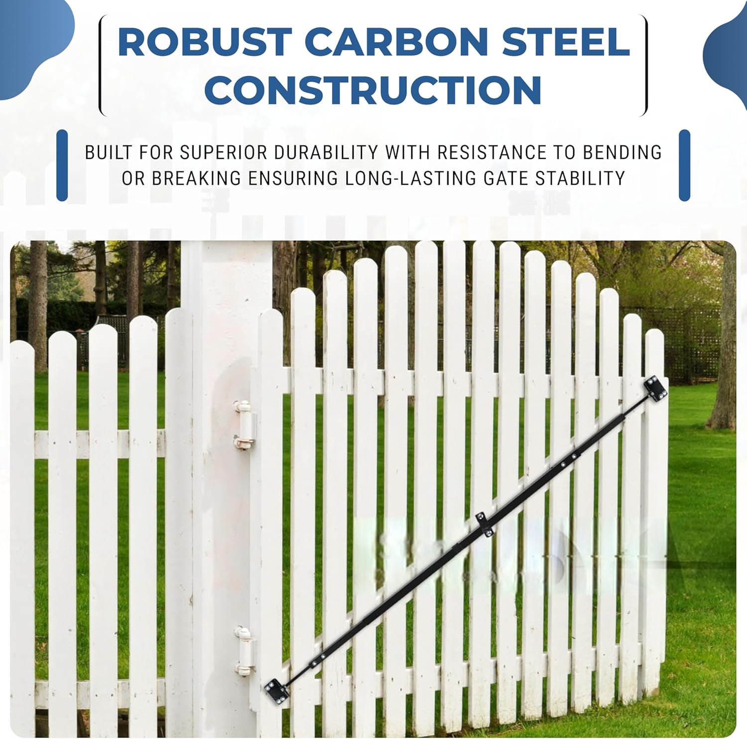 - Heavy-Duty Build: Crafted from carbon steel for superior durability, this anti sag gate kit for wooden fence supports heavy gates with ease, Its sturdy composition ensures long-term performance in demanding outdoor conditions