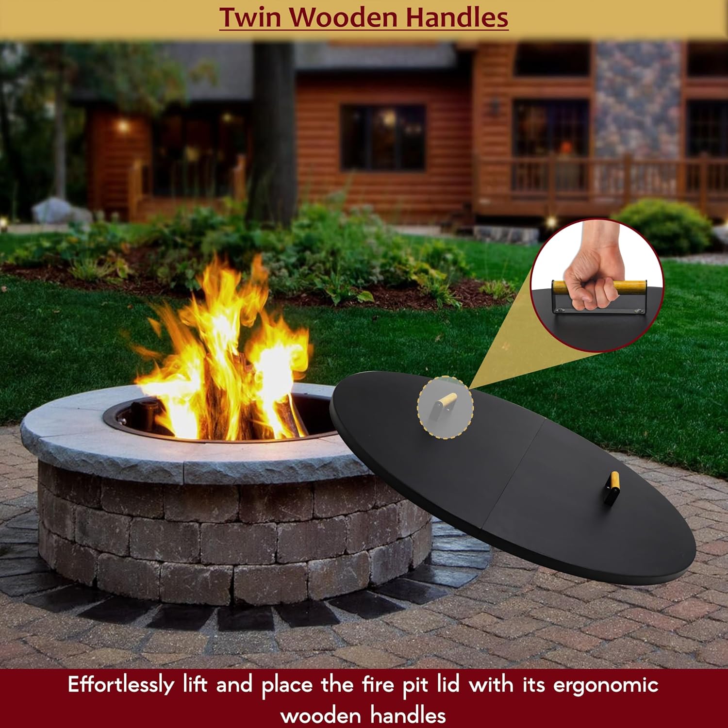 • Ergonomic Design: Equipped with two wooden handles for easy lifting, positioning, and removal, this fire pit cover is designed for effortless handling and a comfortable user experience.