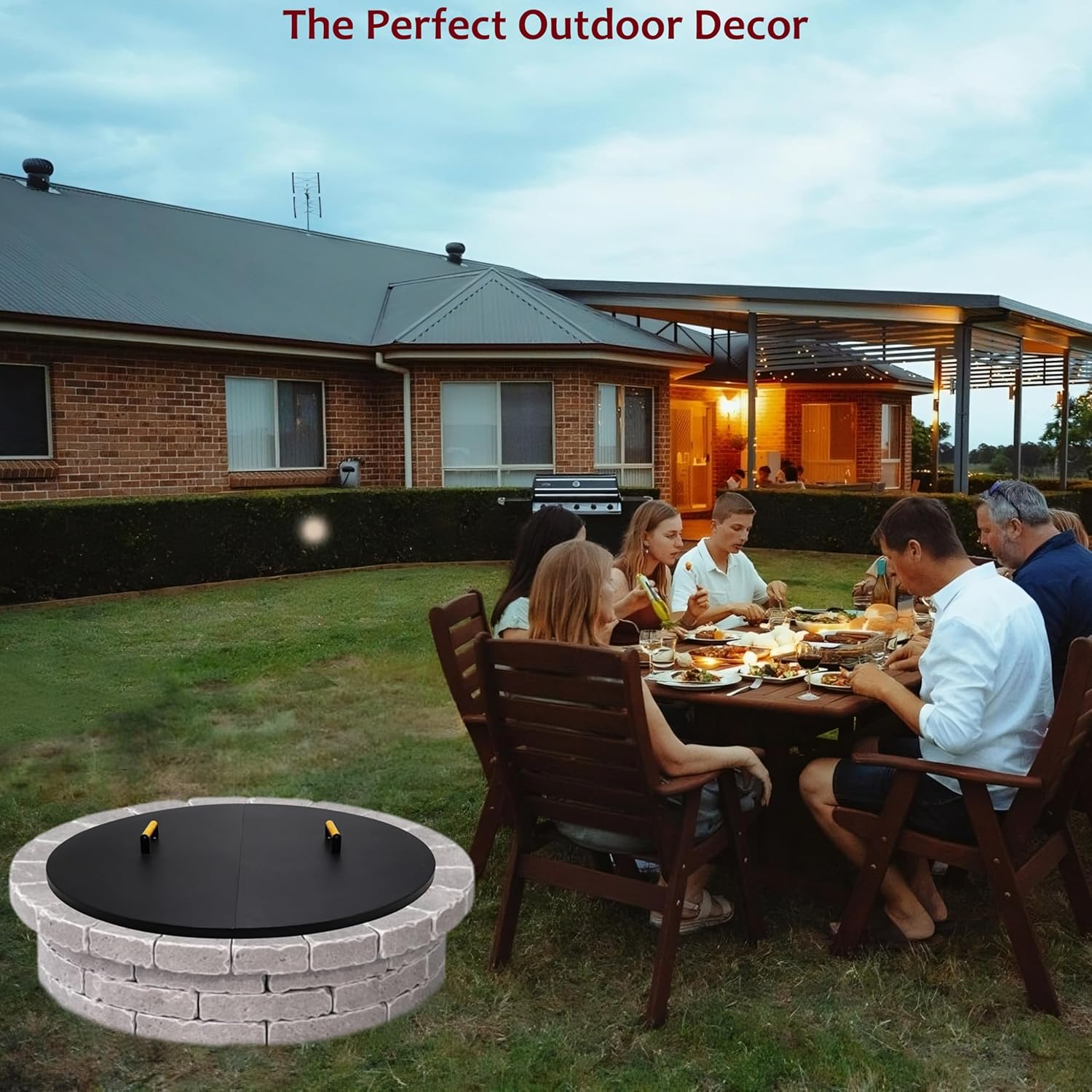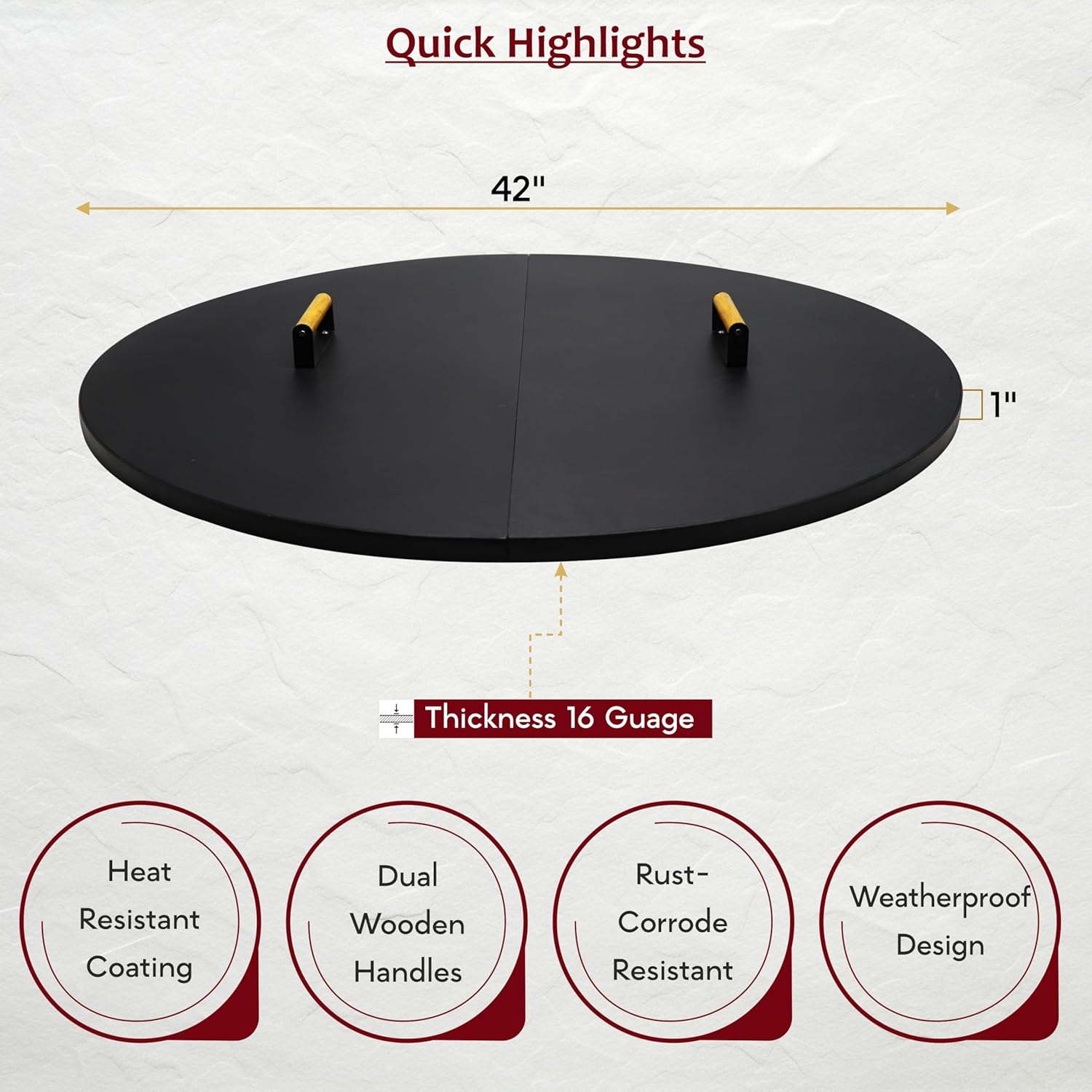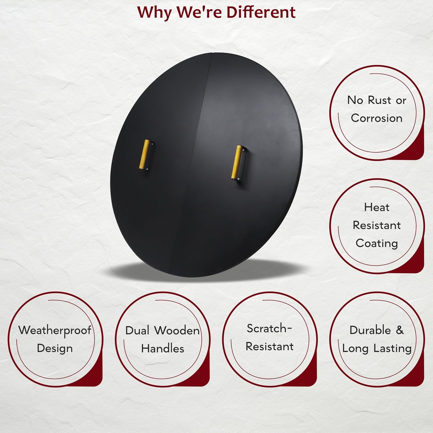 • Weatherproof Coating: Featuring a heat-resistant, anti-corrosion finish, this fire pit lid is designed to endure tough weather conditions, offering dependable protection while maintaining its sleek look over time.