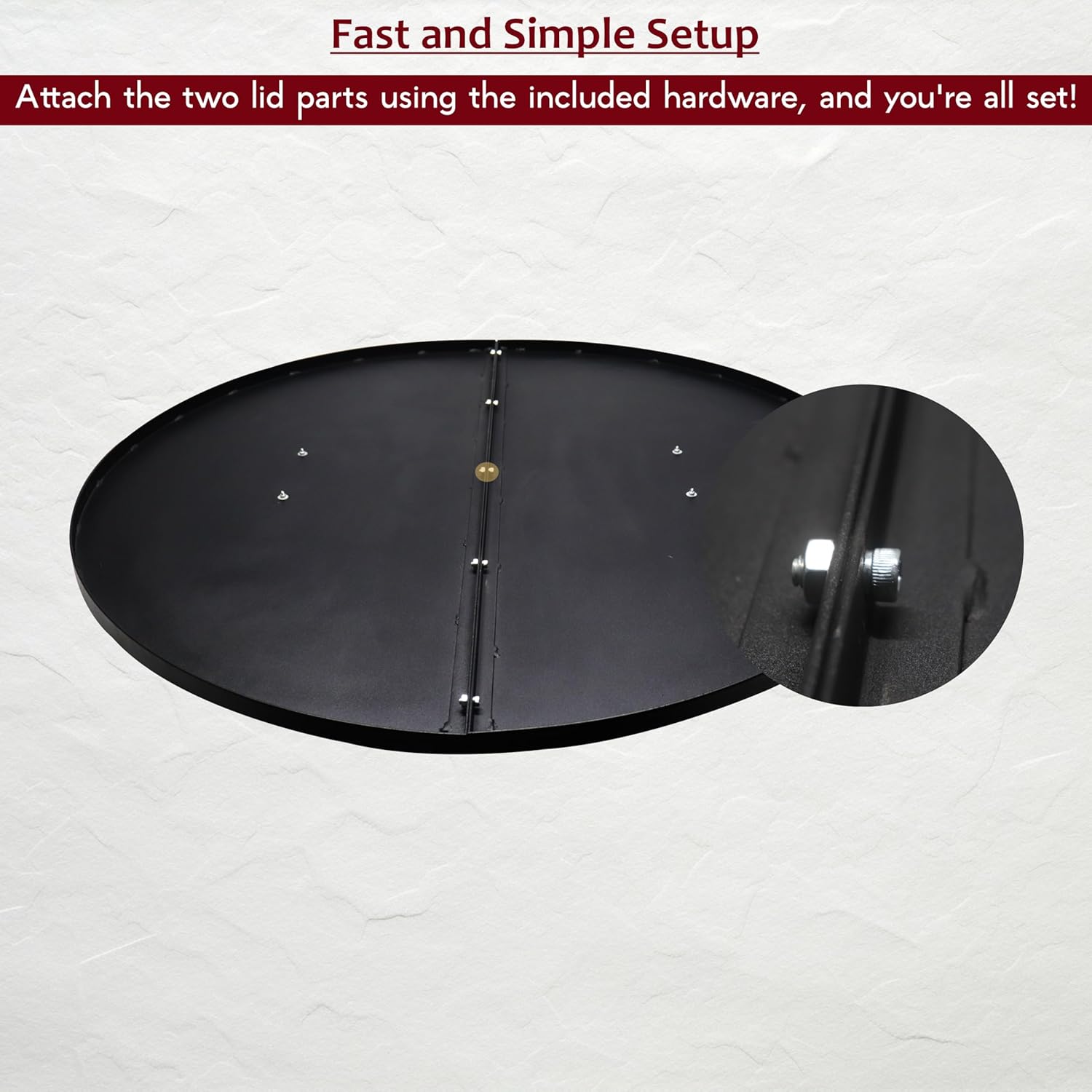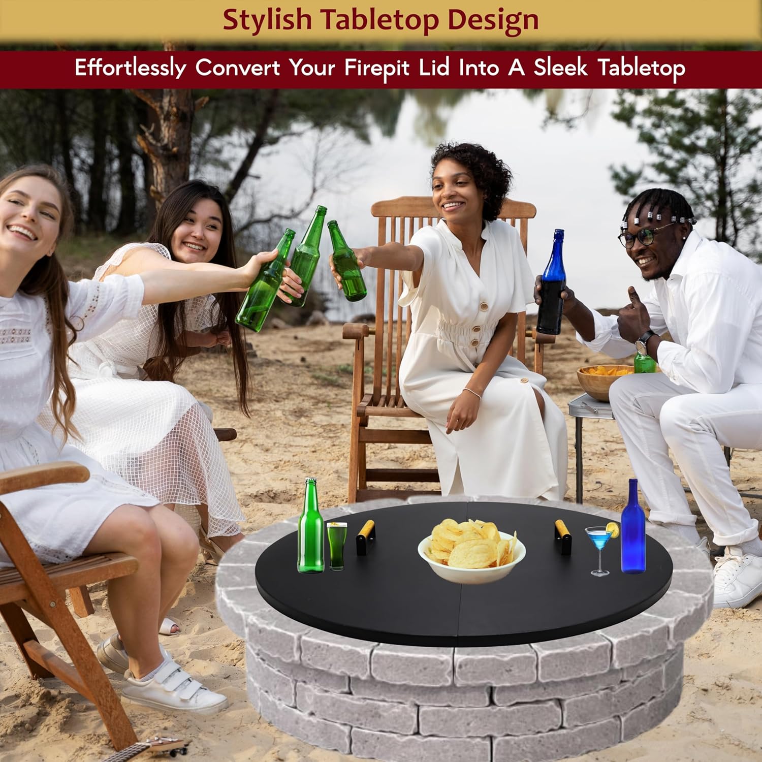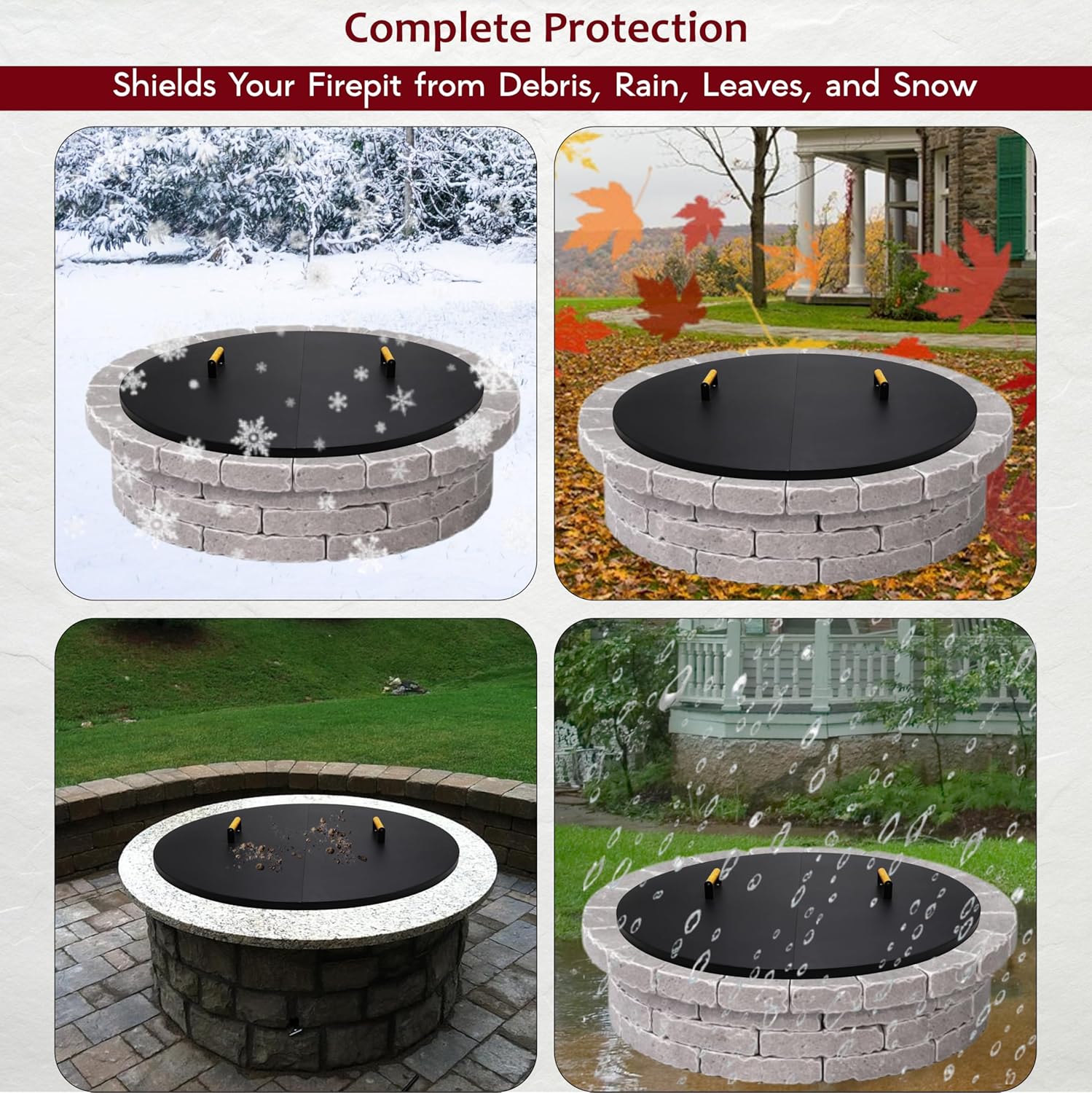 • Weatherproof Coating: Featuring a heat-resistant, anti-corrosion finish, this fire pit lid is designed to endure tough weather conditions, offering dependable protection while maintaining its sleek look over time.