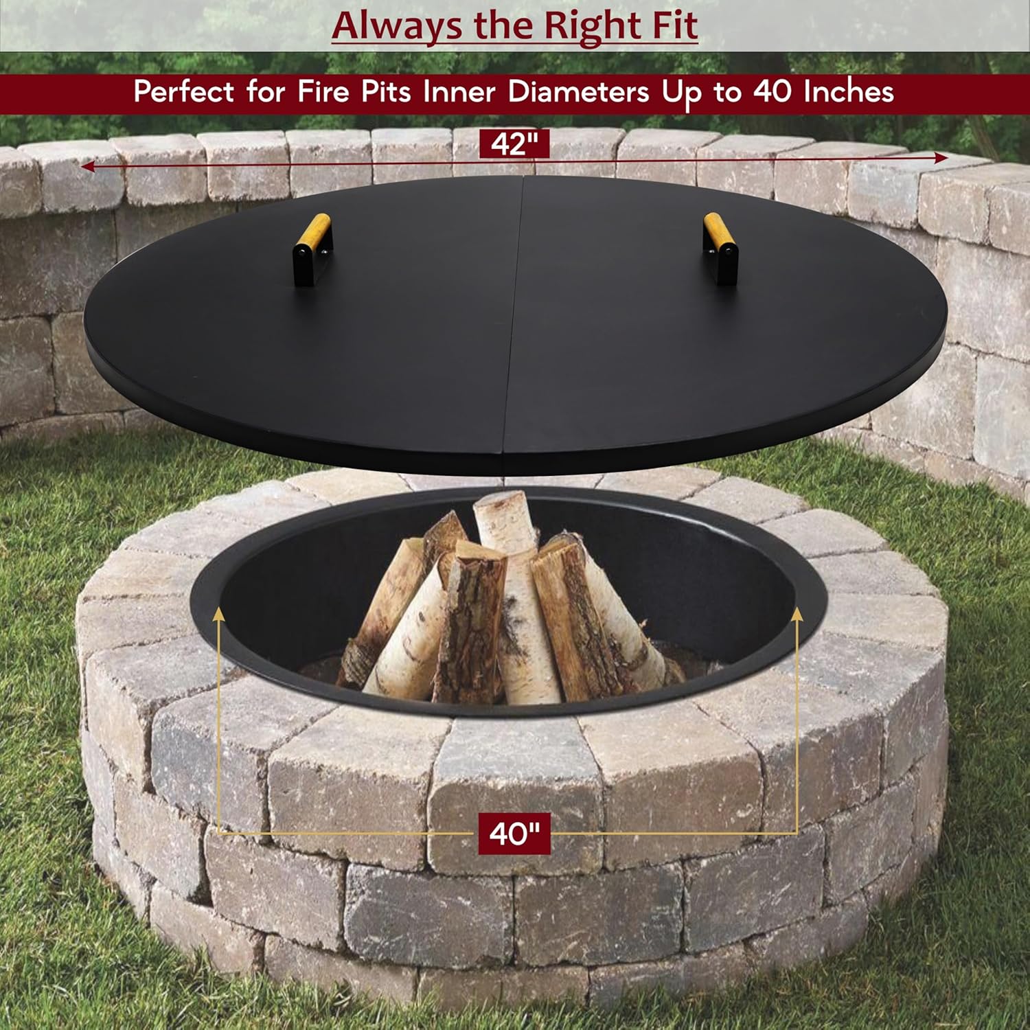 • Generous Size: With a 42-inch diameter, this lid provides ample coverage for fire pits with an interior diameter of up to 40 inches, effectively safeguarding your fire pit from rain, debris, and other environmental factors.