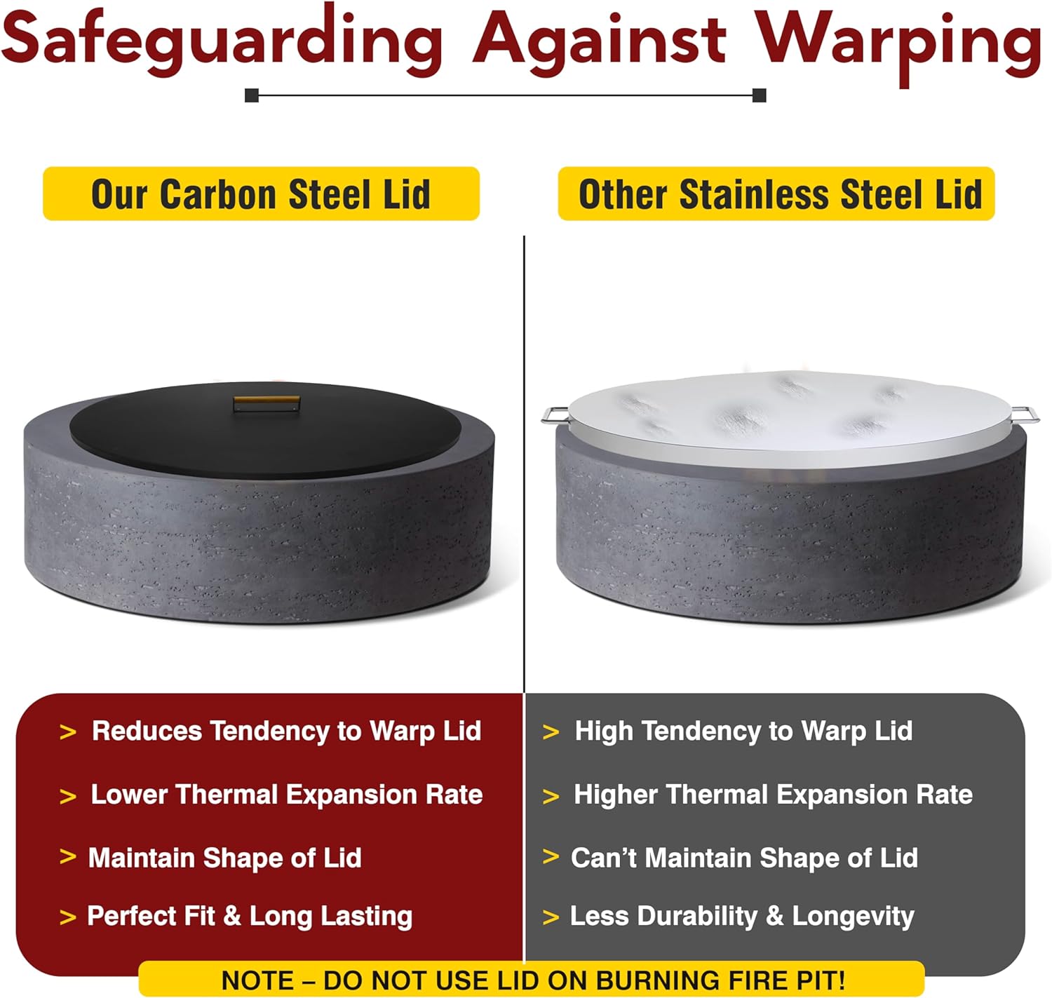 Crafted from durable powder coated carbon steel, this lid is designed to resist warping, ensuring it stands the test of time!
