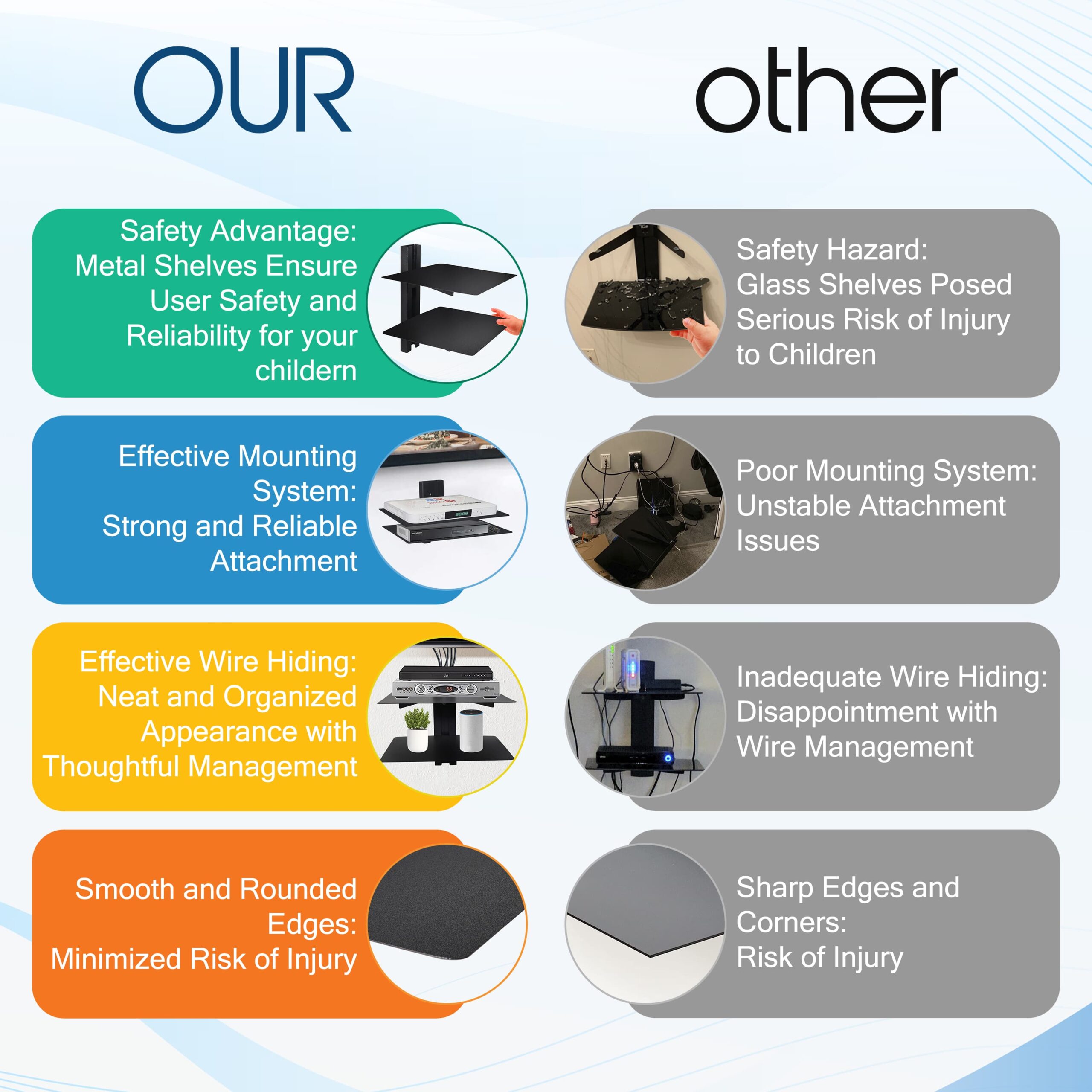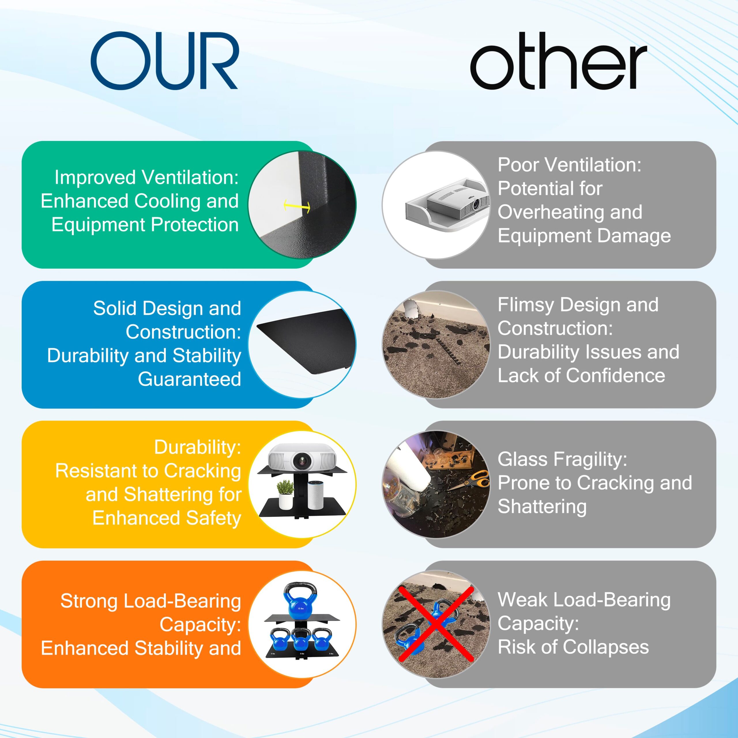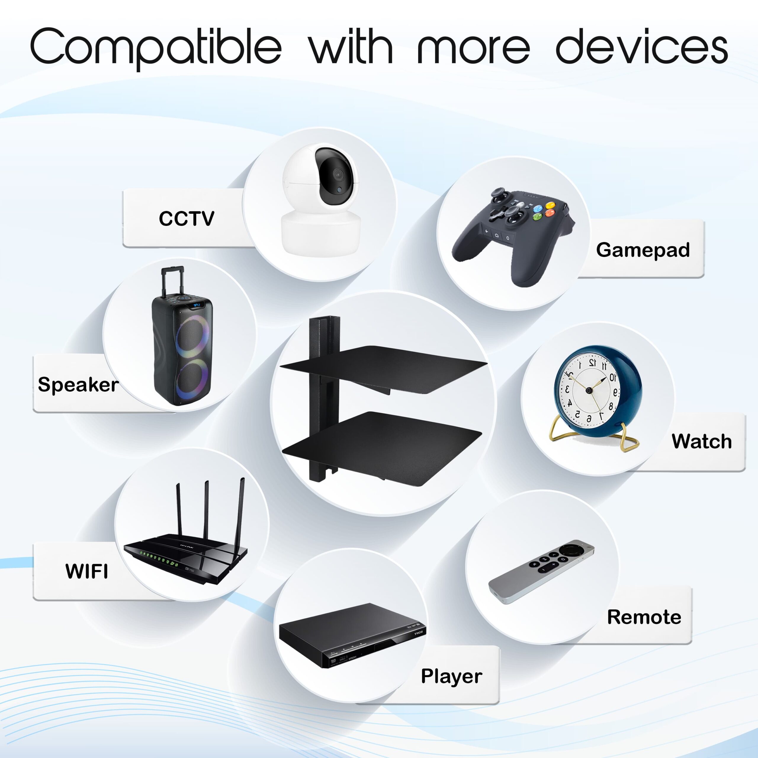 The metal construction of the shelf enables it to support the 15-pound weight of most DVD players and DVRs, ensuring stability and peace of mind.