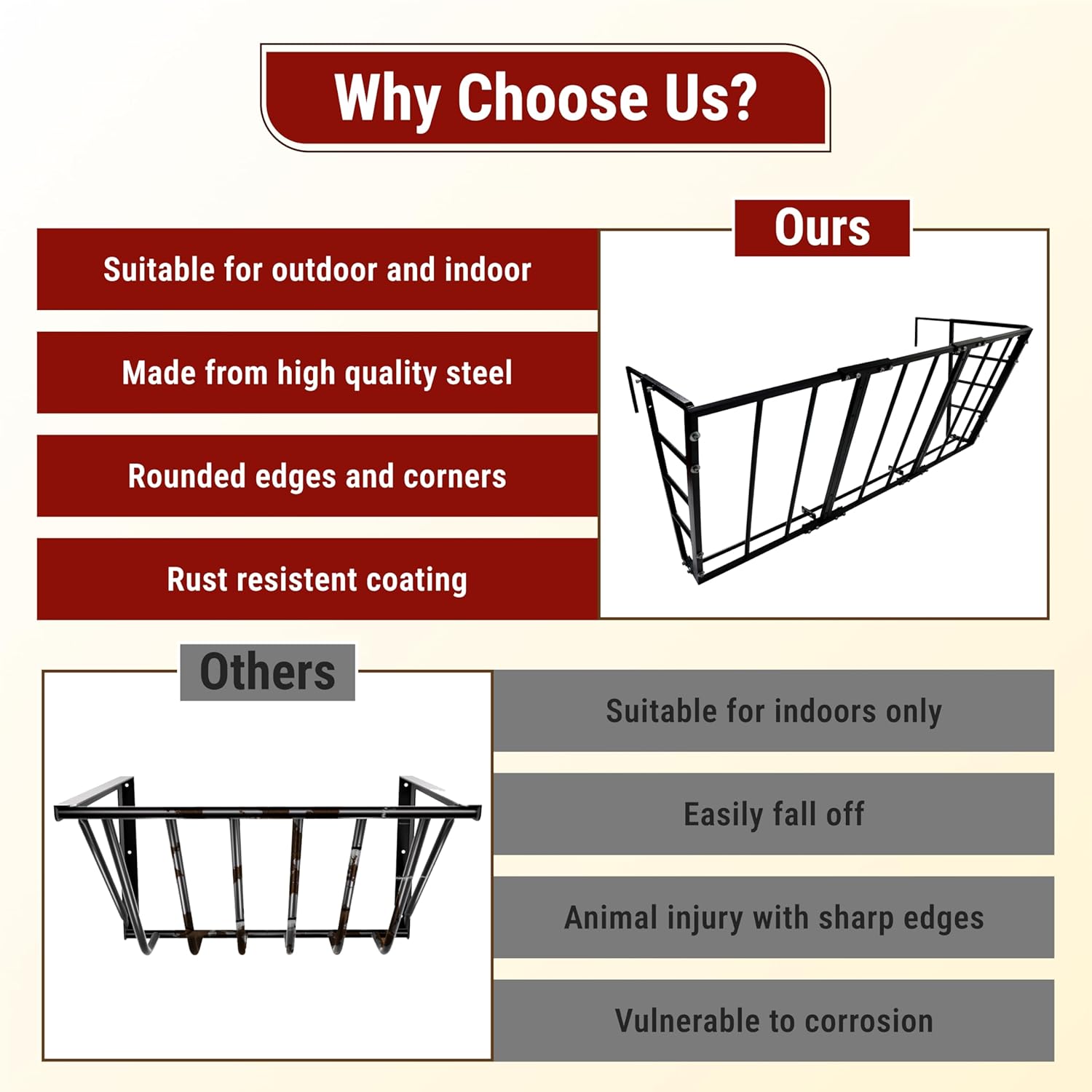 - Premium Rust-Resistant Frame ?Indoor & Outdoor horse feeders and goat feeder with a durable powder coating, this hay rack for goats and horses resists corrosion, ensuring long life in barns, stables, or outdoor use