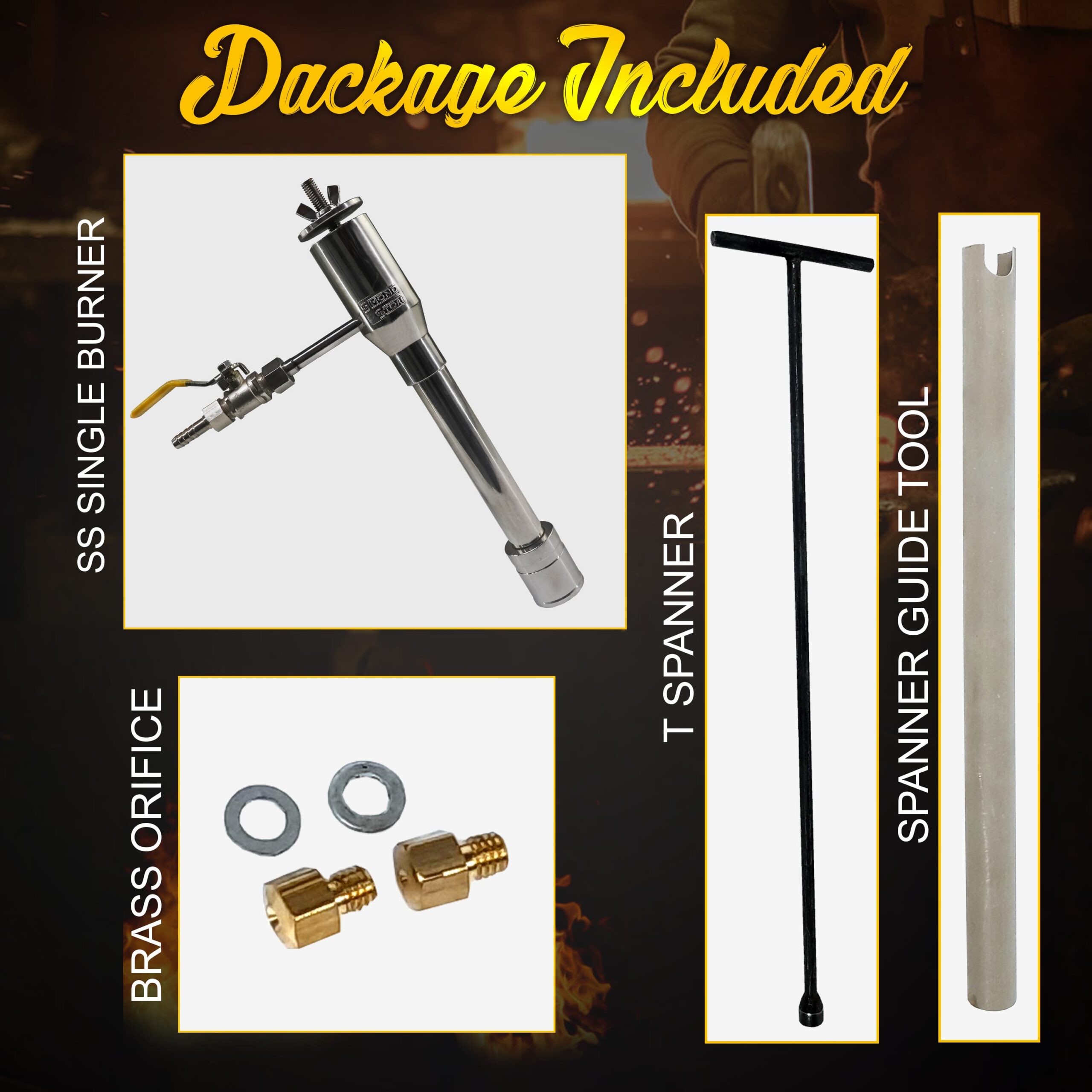 The propane forge single burner is pre-tuned to develop a natural flame and the nozzle is designed to increase the burner efficiency.