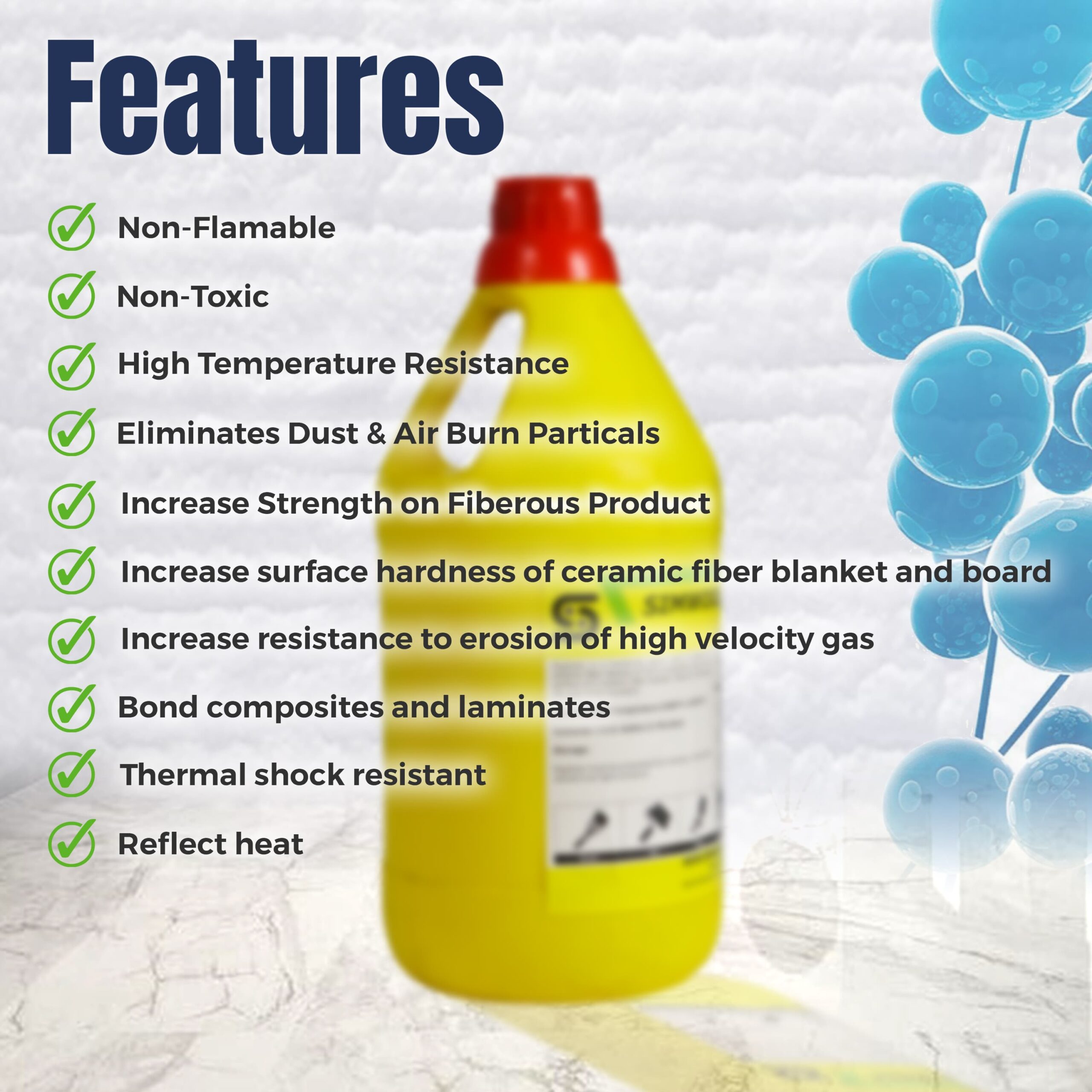 This rigidizer is a colloidal silica compound used for surface coating of ceramic fiber blankets exposed to high-velocity gases, and for surface treatment of ceramic fiber products to increase the surface hardness, resistance to erosion, and thermal shock resistance.