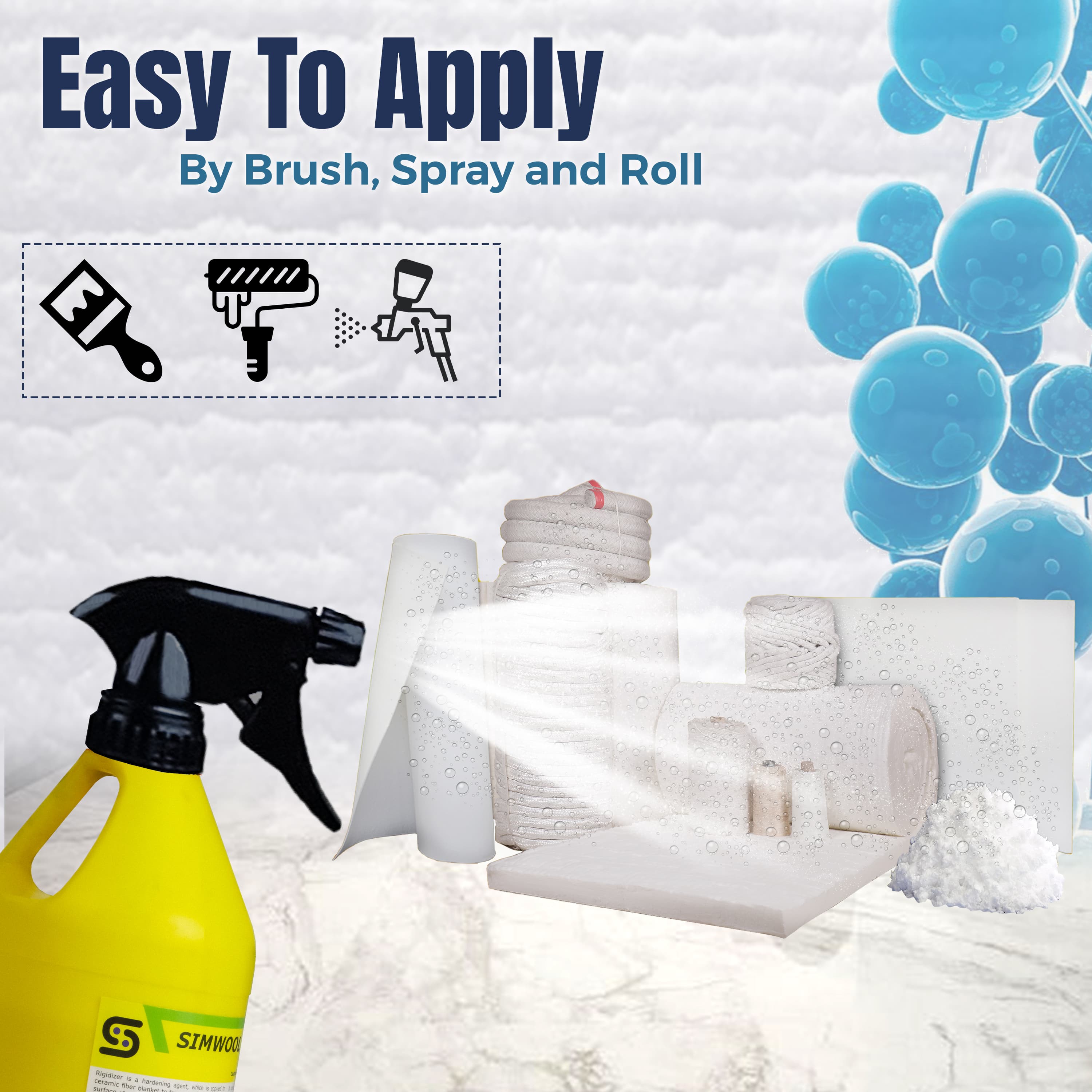because of its low viscosity, it can be applied to ceramic fiber material easily by brushing, spraying, or dipping. It takes around 24 hours of curing time post its application to ceramic fiber materials.
