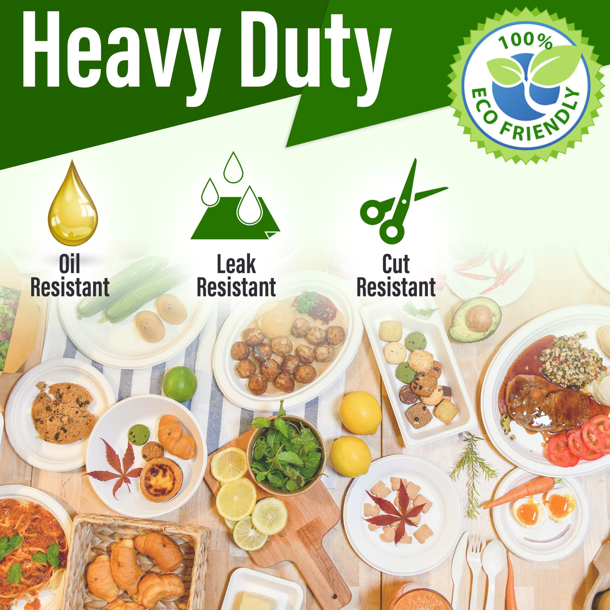 Heavy-duty disposable serving paper plates are leak-resistant, oil-resistant, and cut-resistant. They can hold hot and cold food with ease, making them safe for microwaves, freezers, or even ovens.